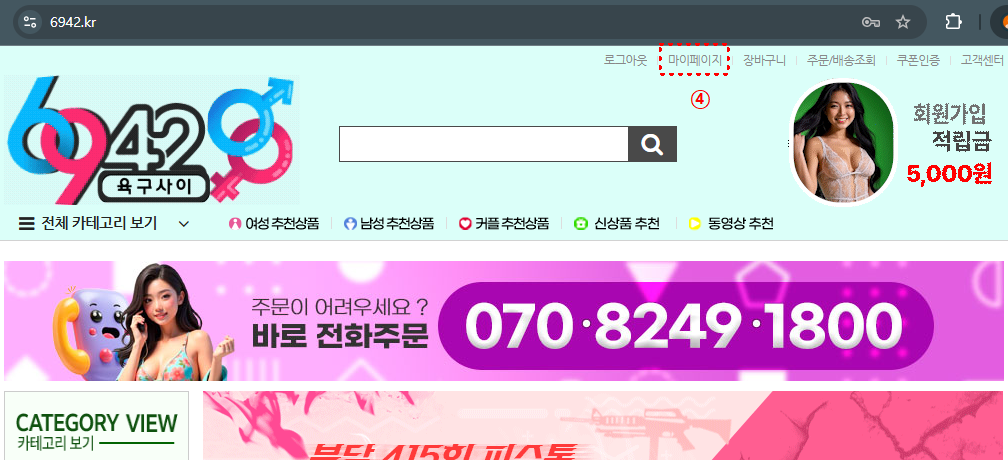 로그인이 되고 나면 최상단에 마이페이지 메뉴가 보이실 겁니다.
